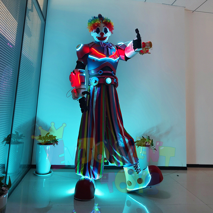 LED clown stilt robot costume stage performance costume with bubbles